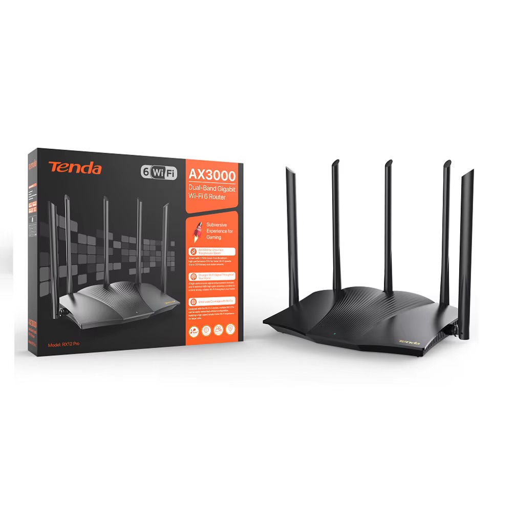 تيندا راوتر واي فاي 6 رباعي النطاق جيجابت لاسلكي مع 5 هوائيات عالية الكسب 7 ديسيبل ويدعم WPA3 ونطاق 7 جيجاهرتز - اسود