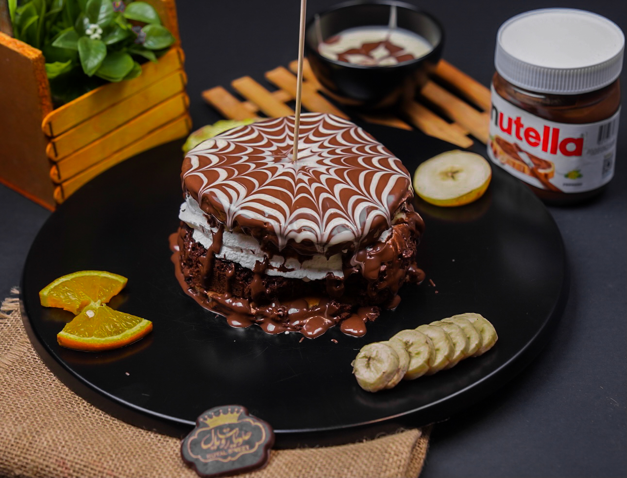 كريب بحشوه الموز والبراونيز مغطى بصوص الشوكلاته